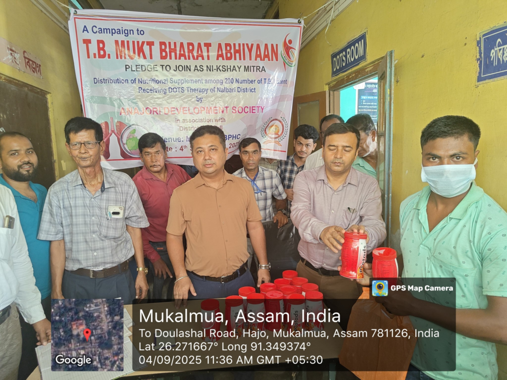 In line with the Government of India’s objective to eliminate tuberculosis (TB) from the country by 2025, Anajori Development Society, continuing its efforts from 2024, has set a target for 2025 to distribute nutritional supplements (protein powder) to 200 TB patients of Nalbari district while they undergo DOTS treatment.